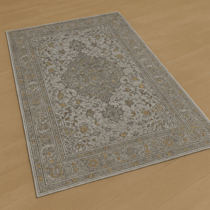 تعتبر هذه السجادة المزيج المثالي بين الطابع الكلاسيكي والمودرن، حيث تمزج بين الأناقة والشعور العصري. بلون رمادي مطفي مع زخارف دقيقة، تضفي هذه السجادة لمسة رائعة على أي مساحة داخلية.