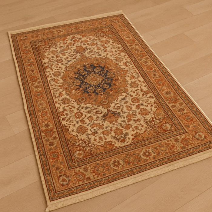 اكتشف سجادة أنيقة بنمط تقليدي مستوحاة من الزخارف التركية الكلاسيكية. تتميز هذه السجادة الرائعة بتصميم يجمع بين درجات البيج والكريمي، مع لمسات بصرية نابضة بالحياة من الأزرق الداكن والنحاسي. تضيف التفاصيل الدقيقة لنقشتها النباتية مركزية مميزة تجعلها الخيار الأمثل لأي مساحة.